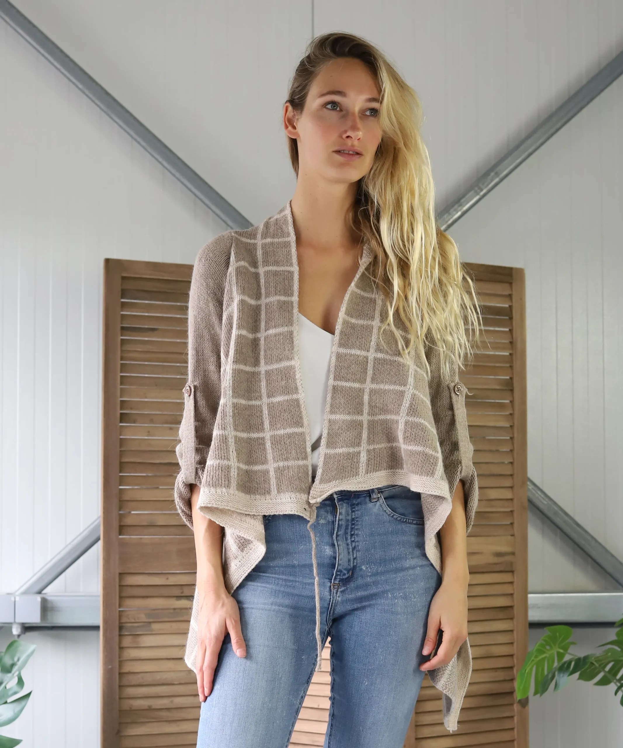 75% polyacryl, 10% wol, 10% viscose, 5% alpaca.