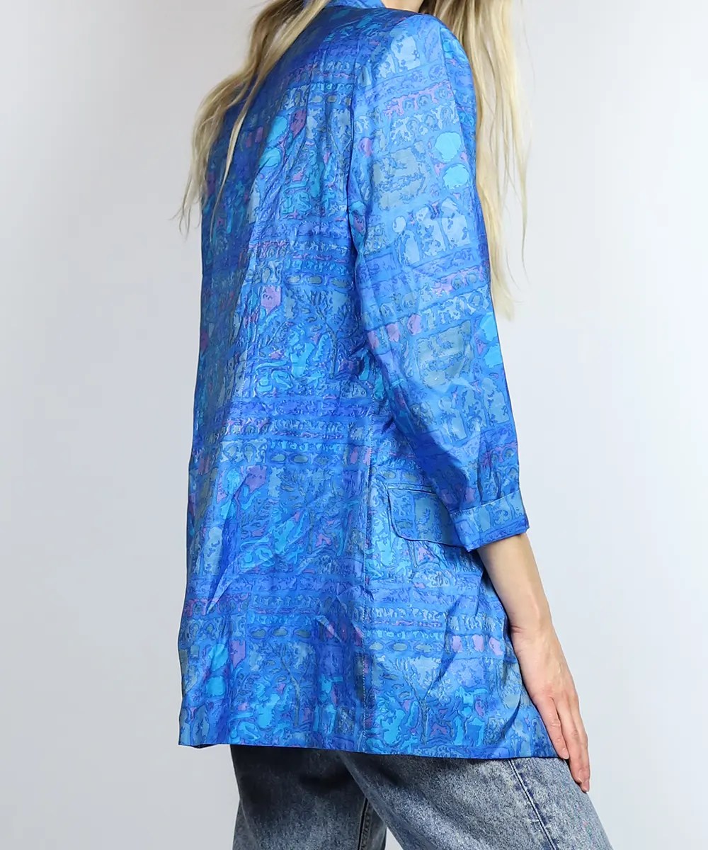 Blauwe vintage blazer zijde